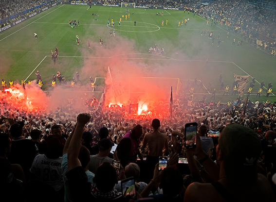 This exhibition looks at his work as a kind of backyard anthropology of the biggest sport the world has ever seen. His images capture the multitudes of human experience orbiting football from the rituals of local fans through to the global giants of the game and beyond. He shows the interweaving of individual daily lives with the game of football. From these intimate images he pans out to capture the games played in the streets and the fierce pride in the local the team. And then beyond this images that capture the interweaving of the game and geopolitical tectonics.
